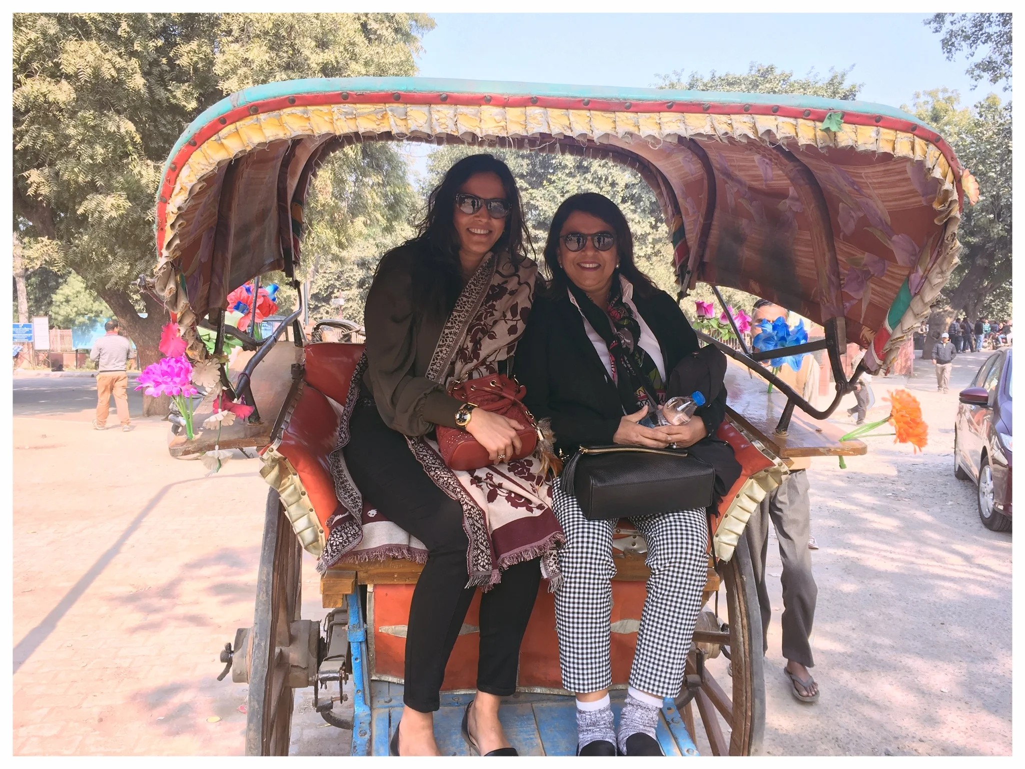 My mom and I about to ride up to the wonderous Taj Mahal!